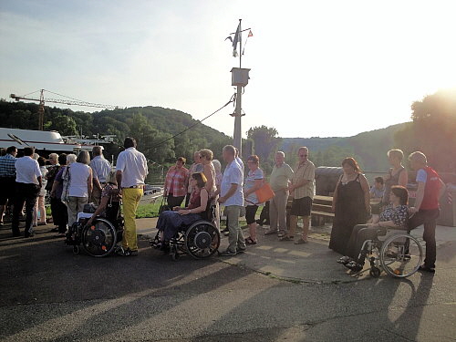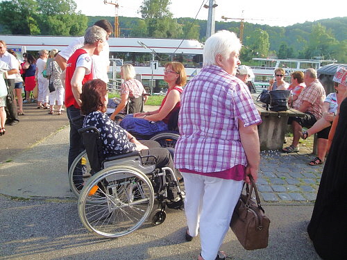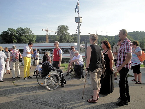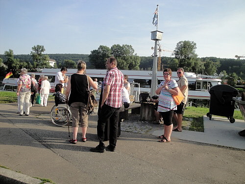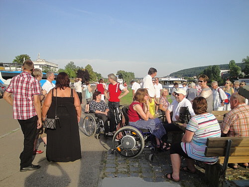 viele Mitglieder unserer Selbsthilfegruppe an der Schiffsanlegestelle
