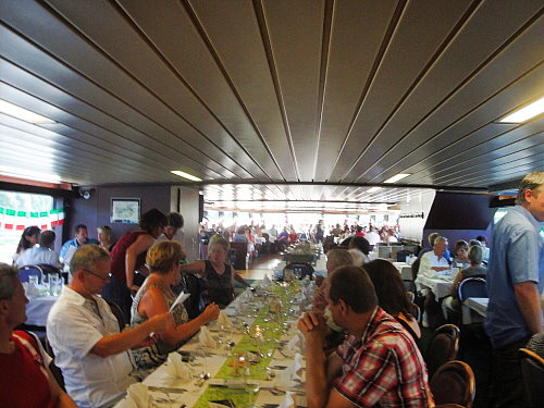 Der Service an Bord der „Renate“ war super schnell und schon bald stand das Buffet … es war nicht leicht sich zwischen all den Leckereien zu entscheiden … es gab so viele gute Vor-und Hauptspeisen..auch das später aufgetischte Nachspeisenbuffet war total prima … das Schiff war angenehm temperiert und unsere Fußgänger konnten die schöne Aussicht auch von oben genießen, die anderen durch die grossen Panoramafenster natürlich auch.