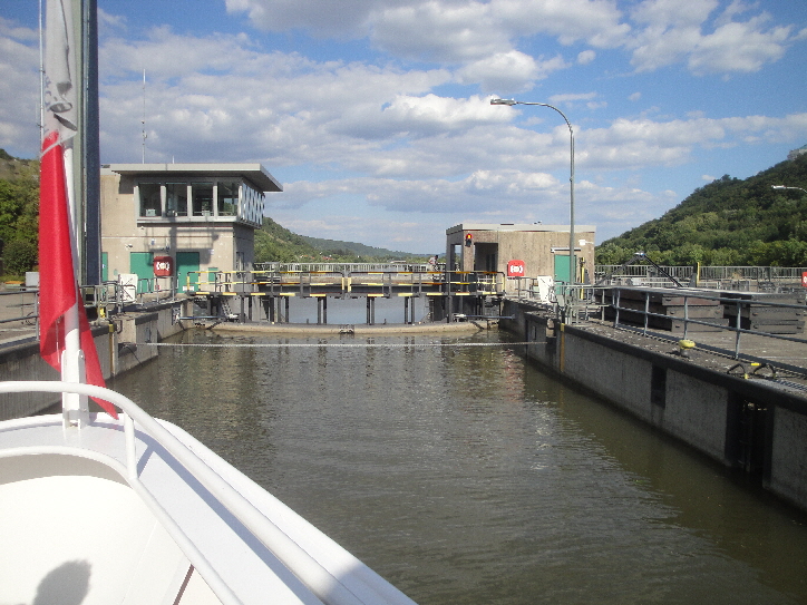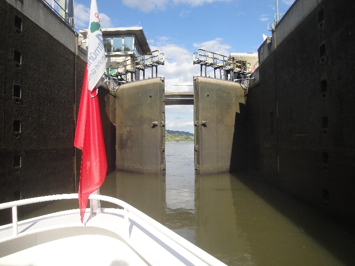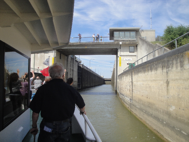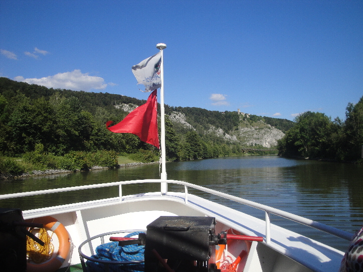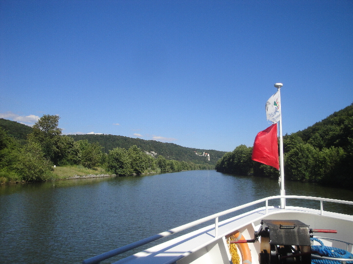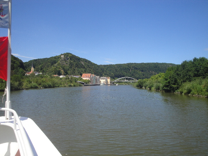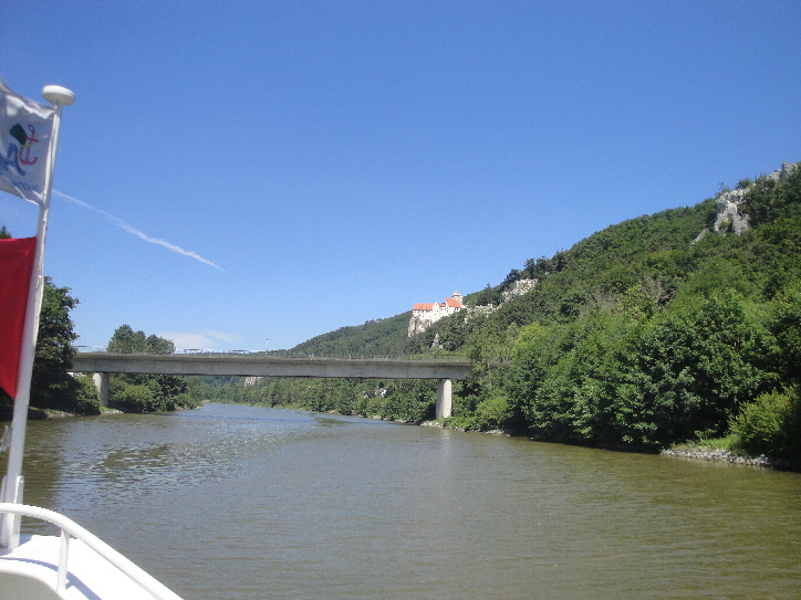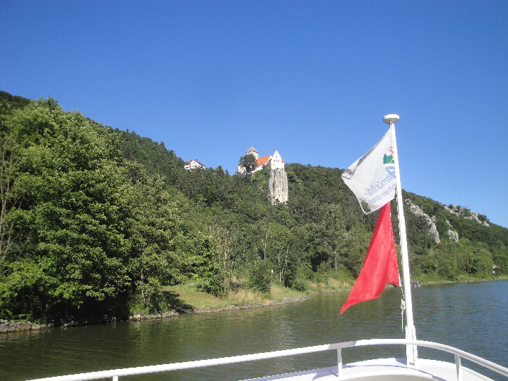 Romantisch wirkten die Burgen auf den Felsen dieses Tales, bei Essing durchfuhren wir die geschwungene Holzbrücke. Auf der Strecke musste auch eine große Schleuse passiert werden.