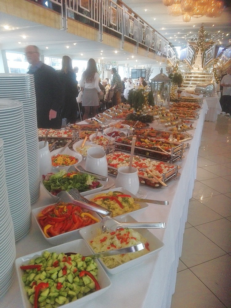 Während der vierstündigen Fahrt wurden wir mit einem Begrüßungssekt und einem reichhaltigen Buffet verwöhnt: