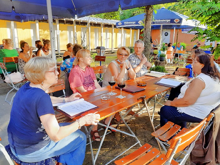 ... es waren schon sehr emotionale Gefühle, als sich die Gruppenmitglieder nach so langer Zeit wieder persönlich begrüßen konnten.... am Ende der Begegnung waren sich alle einig: es tat gut, über seine Sorgen und Nöte zu sprechen und diese mit der Gruppe zu teilen...mit dem freudigen Ausblick auf das nächste Treffen fiel der Abschied nicht so schwer....in diesem Sinne hoffen wir das alle von Covid verschont bleiben und wir uns bald wieder in geselliger Runde treffen können ...